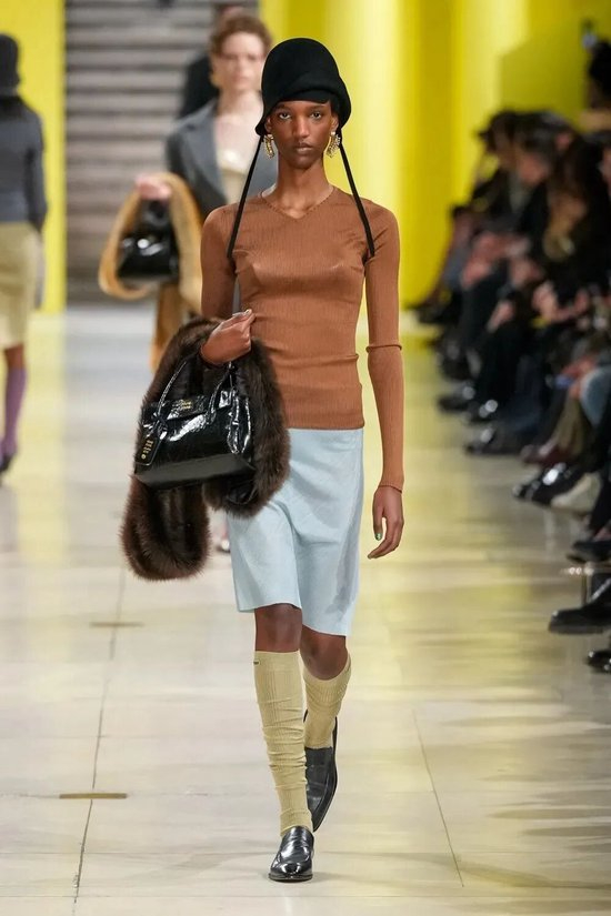 但在以低饱和为主的秋日调色盘下,需要结合闪光面料、亮面材质等才能做到: